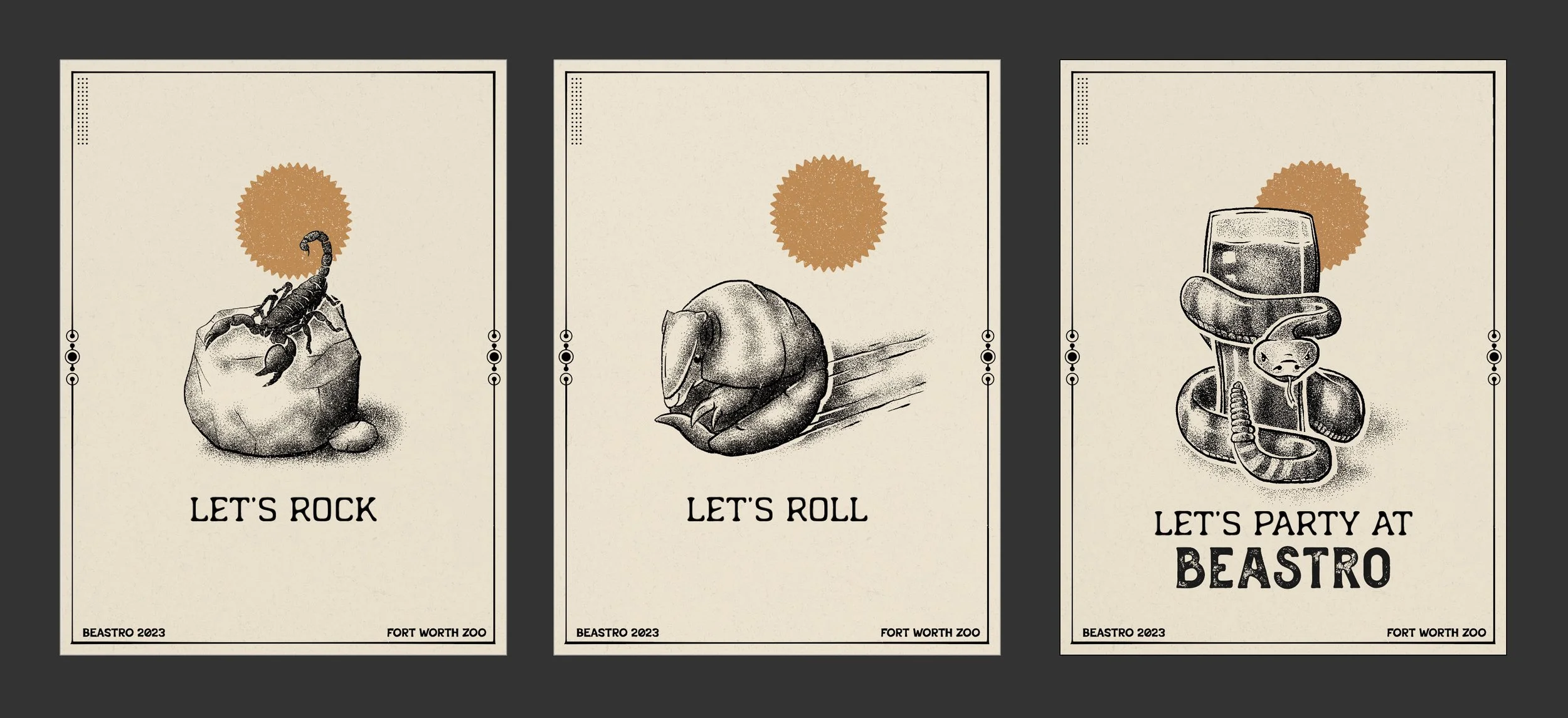 During my time at the Fort Worth Zoo, I played a key role in art direction and collateral creation for various events, ranging from donor gatherings to holiday festivities. Our team had control over the style and creative marketing elements featured in these events. This included designing posters, signage, menus, billboards, social media advertisements, and more. In these materials, we utilized creative typography, incorporated captivating images and illustrations to enhance the visual impact.